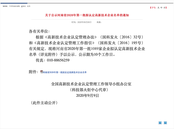 喜讯!森源鸿马名列河南省2020年第一批高新技术企业名单2020-09-17 18:30:20