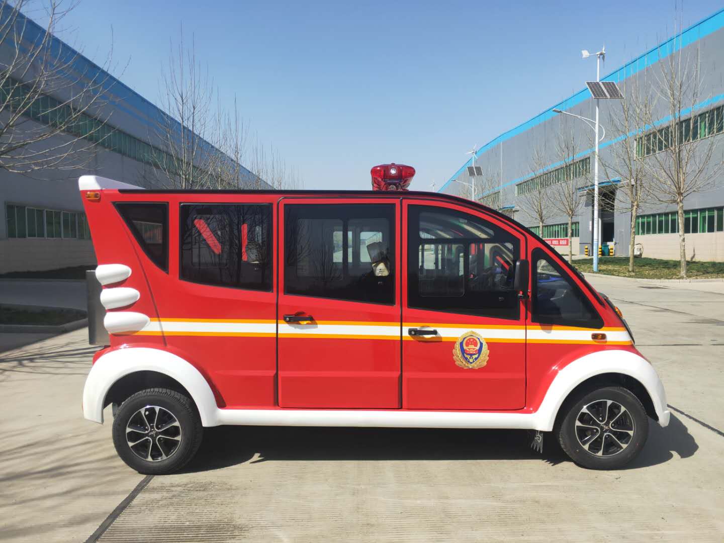 电动消防巡逻车,具备体积小、环保、稳定的技术优点,车上可坐多名人员,并配有消防器材,可以形成多层次、多角度、多形式的大巡逻防控网络,及时发现并清理社区内各种不安全因素,提高社区消防巡逻巡查频率和应急处置能力,对及时有效地保护人民群众生命财产安全起着积极的推动作用。