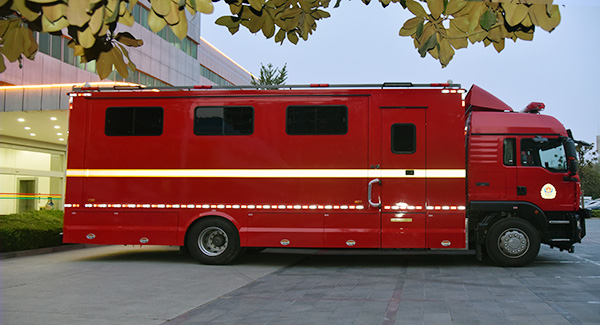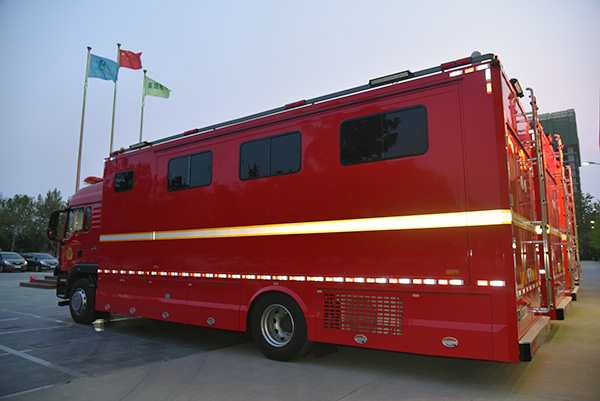 此次四川采购的森源鸿马多功能宿营车是为满足一线消防战士执行灭火救援任务的需求,量身定制的能够满足24人住宿的新型后勤保障车,整车外观威武大气,设计合理,设施齐全,使用方便,集成运兵宿营、生活保障、移动办公、视频会议等功能,适用于野外一线开展应急救援后勤保障等工作,解决了一线消防战士住宿困难等的问题。