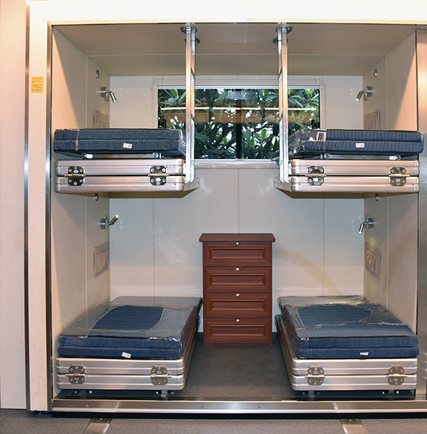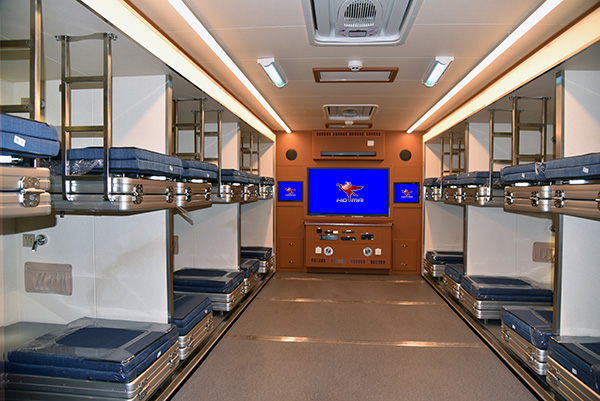 据介绍,这批多功能宿营车采用两侧扩展设计,扩展后可使厢内面积大幅度增加,每个床位还配备有微型照明灯。此外,车厢内还配备空气调节系统、影音系统、卫生洗浴系统、安全防护系统、通风换气系统等,可满足一线消防战士24小时执行灭火救援任务和基本生活的需求,全力确保人民群众生命安全。