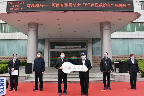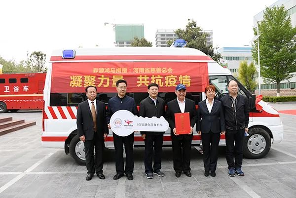为支援河南打赢这场疫情阻击战,4月9日,森源鸿马—河南省慈善总会5G负压救护车捐赠仪式在森源鸿马公司举行,河南省慈善总会副会长盛国民、副秘书长姚林安、副秘书长兼募捐救助部部长和占鹤,森源鸿马公司领导马鸿军、邢会敏、王秋荣出席活动,仪式由森源鸿马常务副总经理邢会敏主持。