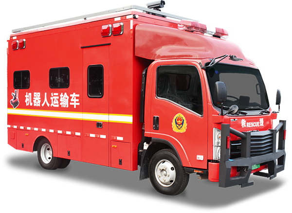 机器人运输车配备专业的消防机器人上下车辅助系统和机器人固定装置,解决了消防机器人运输的问题。消防机器人运输车满足了应急救援,快速反应的实际需求,能够第一时间将消防机器人送达救援现场,提高救援灭火效率。