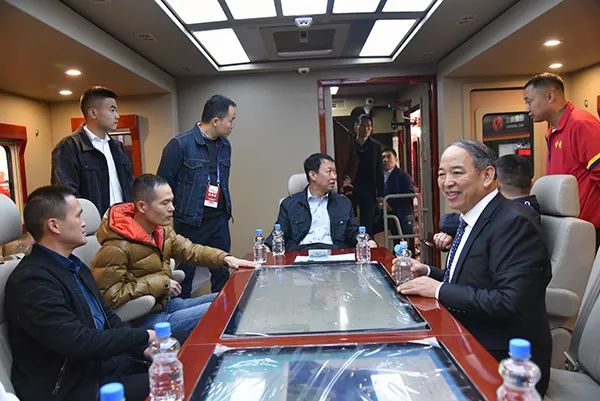 在展位上,徐平司令员一行认真听取了森源重工讲解员的讲解,认真观看了“一身红装”的战勤保障装备,并不时与企业技术人员交流,了解时下新兴消防救援装备的发展成果和发展前景。对森源重工·森源鸿马研发生产的“互联互通”的消防救援卫星通信车,“麻雀虽小,五脏俱全”的微型消防站,能够让消防指战员“住得好、穿得暖、吃得饱”的“多功能宿营车、多功能饮食保障车、多功能卫浴车”给予了肯定与赞赏。